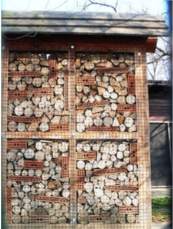 I nidi inoltre devono essere sostituiti o per lo meno ripuliti minuziosamente ogni anno, poichรฉ vi si accumulano esuvie, detriti vari, acari e organismi patogeni come batteri e funghi. Dopo avere prestato attenzione a tutti questi aspetti esiste per questi nidi il serio problema della concentrazione di uova, larve o pupe di impollinatori in attesa di sfarfallare come adulti nel periodo primaverile o estivo, concentrazione ben evidente nella figura 1, che raffigura un grande bug hotel, con molte โcamereโ ma quasi tutte delle stesse dimensioni e altre troppo grandi e di forma non consona.